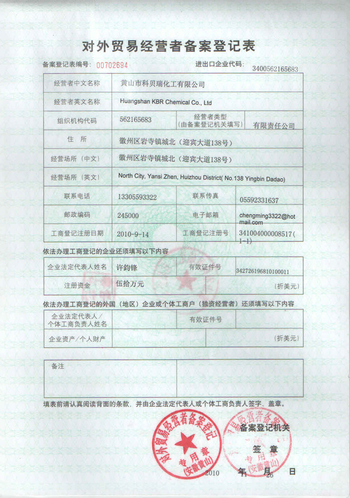 Huangshan KBR New Material Technology Co., Ltd. Order 中文版